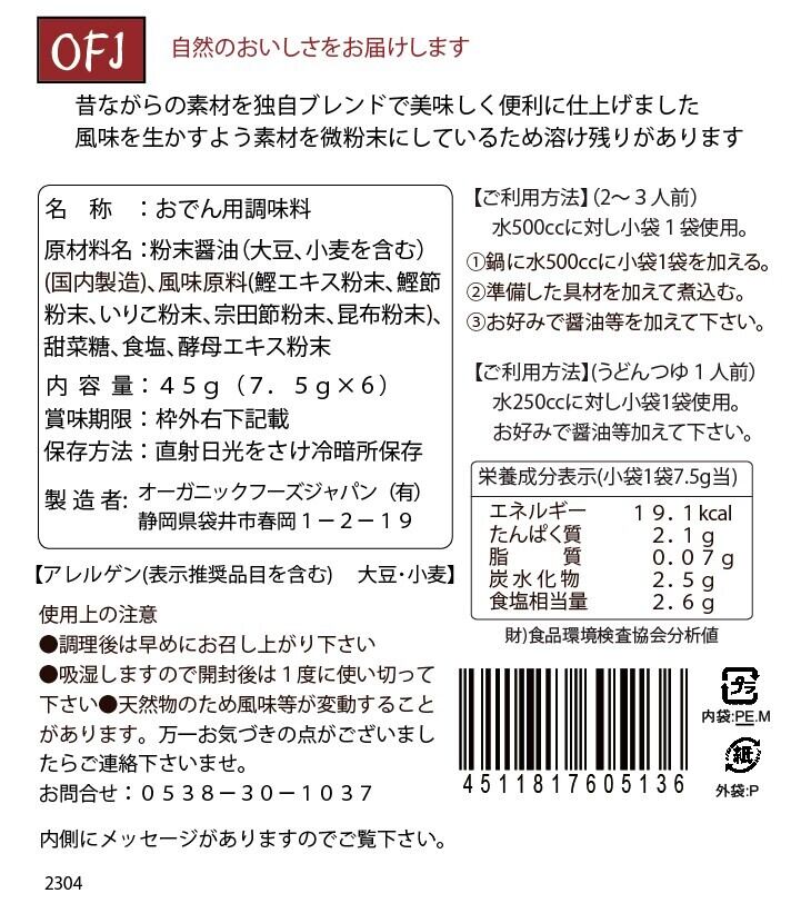 【アウトレット】おでんの素(7.5g×6)