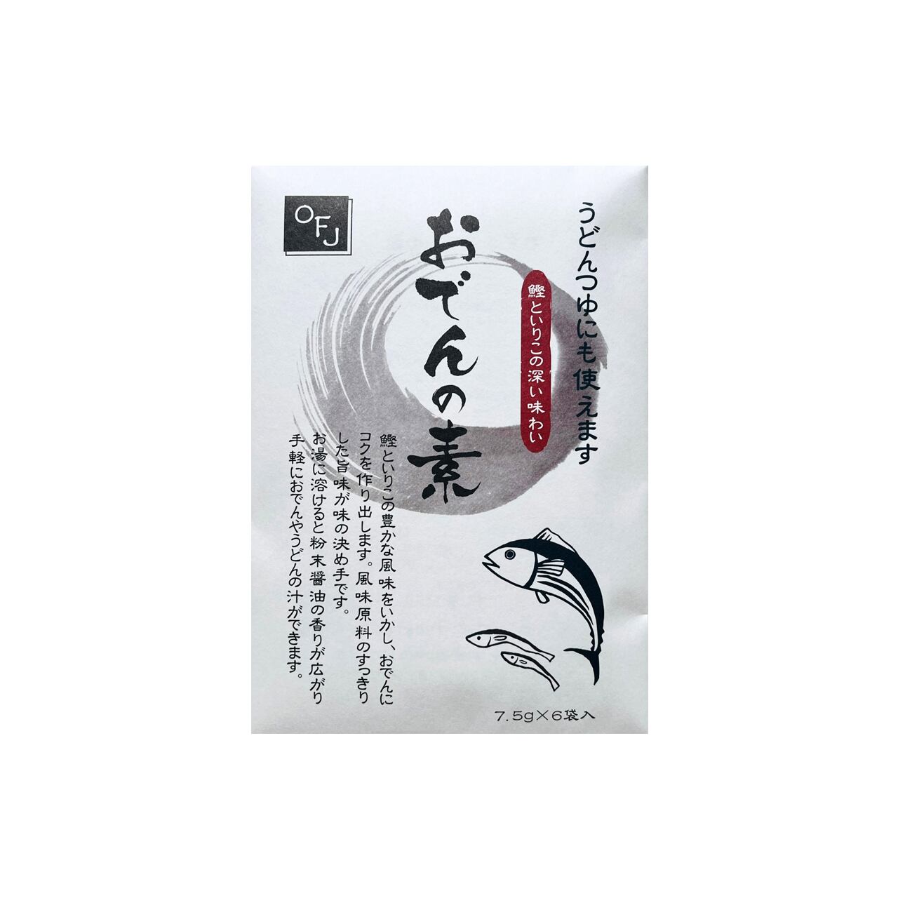 ●かつお節といりこを使用したおでんの素。コクのある味わいとすっきりとした後味が特徴で簡単に本格的なおでんが楽しめます。7.5g×6袋入りで、1袋で美味しいおでんを作ることができます。
